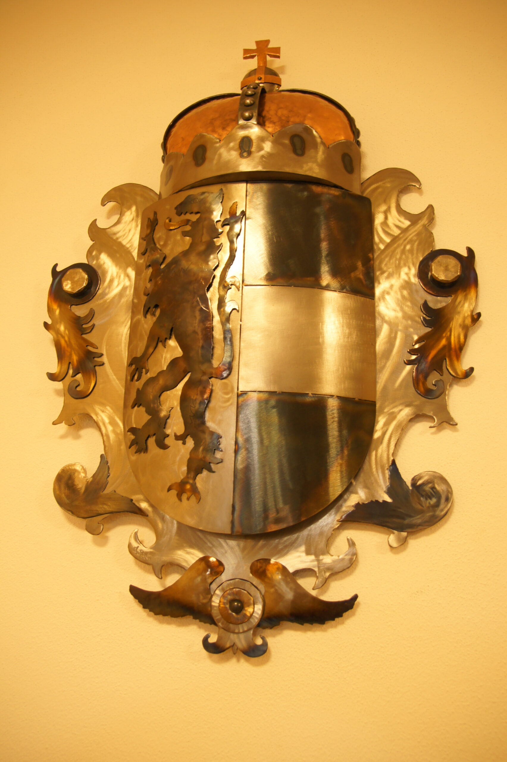Metall verleiht einem Wappen Eigenschaften, die andere Materialien kaum erreichen: Beständigkeit, Wertigkeit und Ehrfurcht, Gewicht & Präsenz: Es fühlt sich „echt“ an! Handwerkliche Tiefe: Spuren der Herstellung bleiben sichtbar. Ein Wappen aus Metall ist kein Deko Element, sondern ein Statement – sichtbar, spürbar und langlebig.